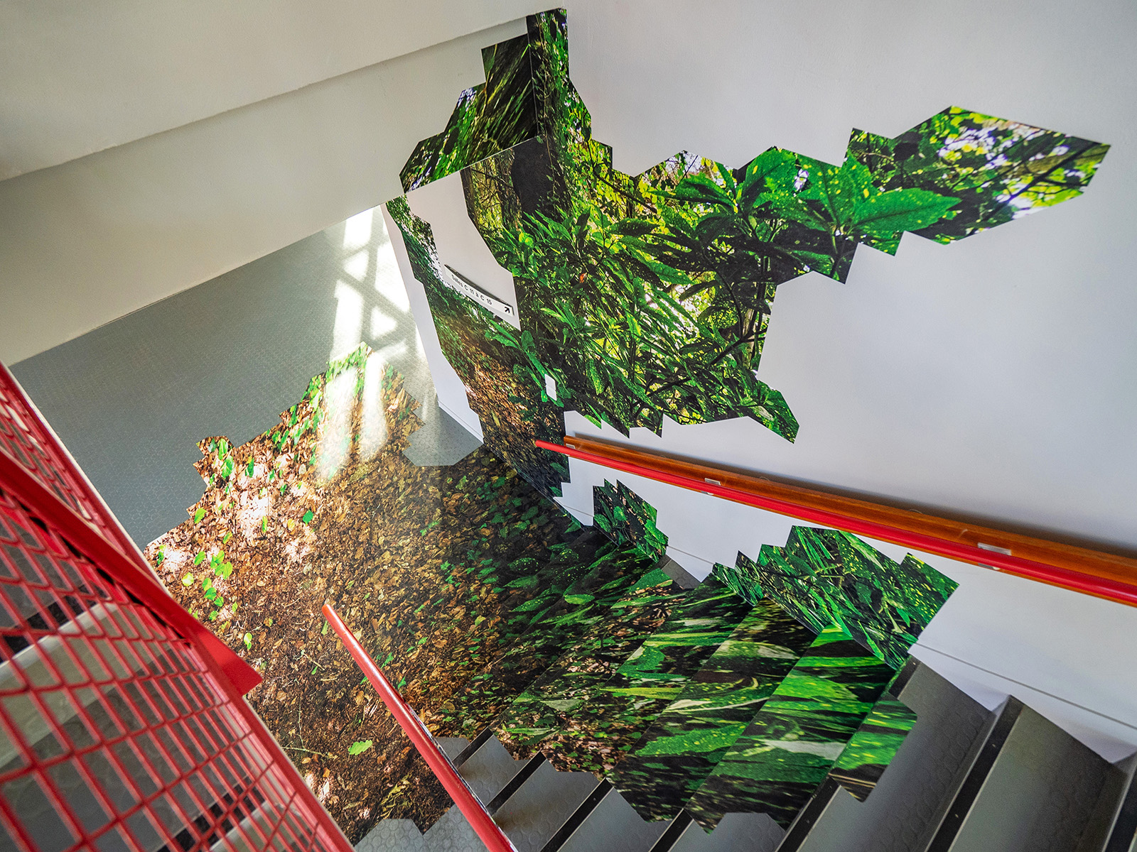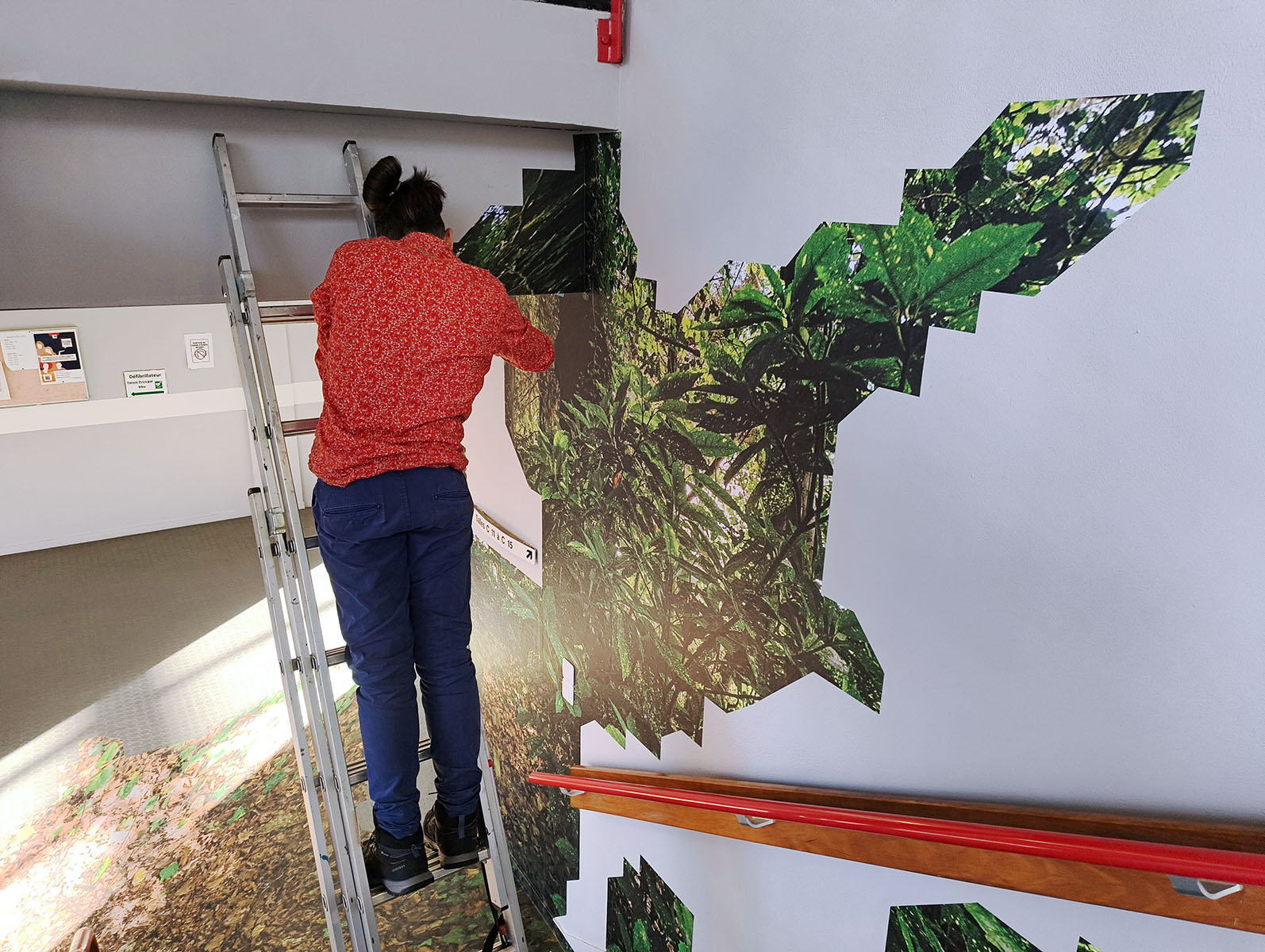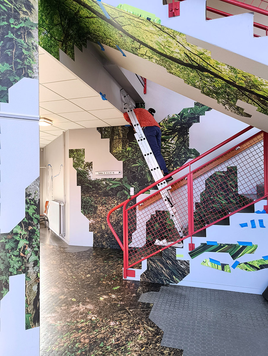 En résulte une installation immersive et monumentale, faite de photographies combinées et collées directement sur les murs. Les élèves peuvent librement marcher dessus, réinvestissant et s'appropriant ainsi l'espace de l'œuvre et de l'image.