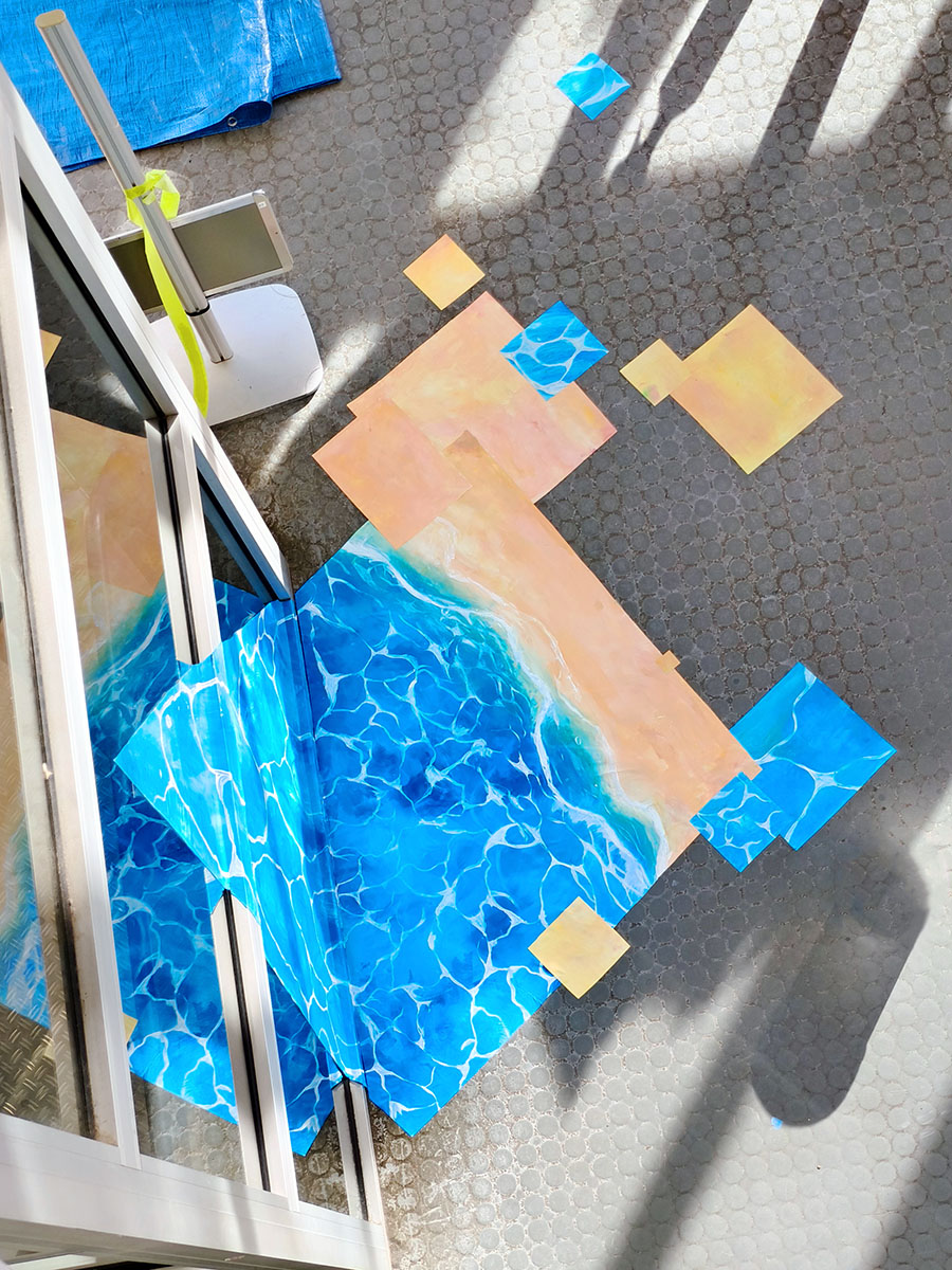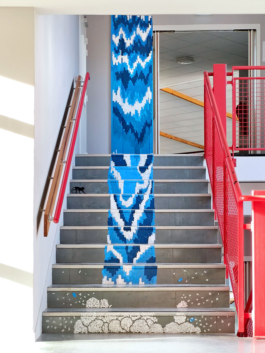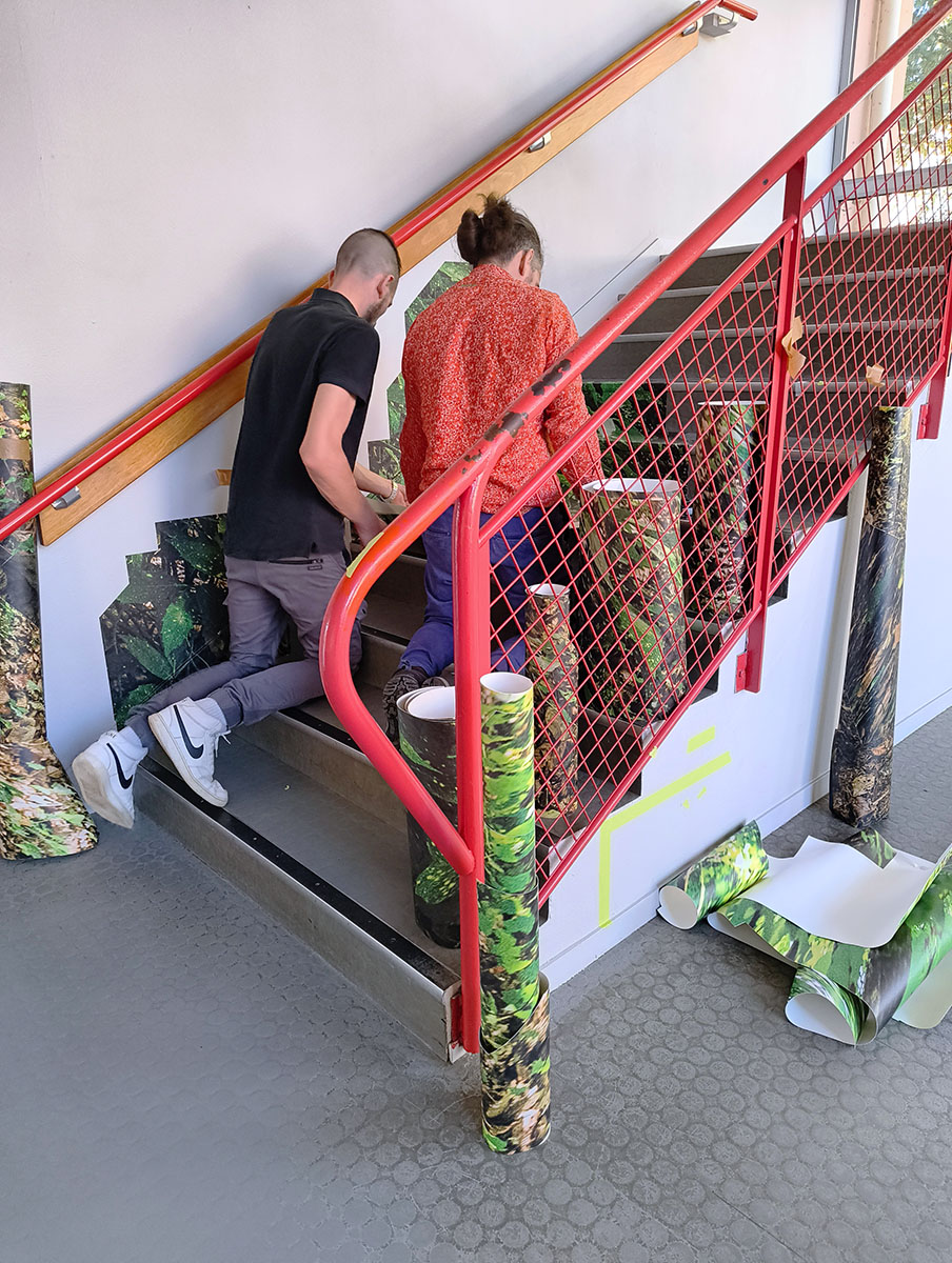 En résulte une installation immersive et monumentale, faite de photographies combinées et collées directement sur les murs. Les élèves peuvent librement marcher dessus, réinvestissant et s'appropriant ainsi l'espace de l'œuvre et de l'image.